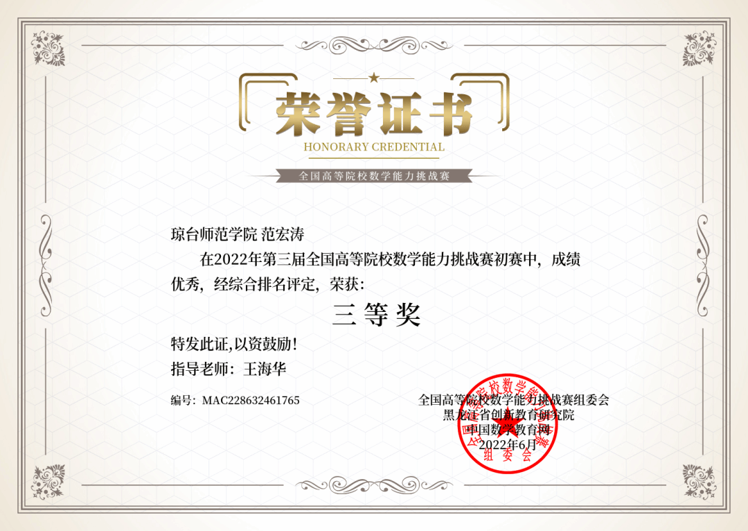 2022年第三届全国高等院校数学能力挑战赛初赛三等奖