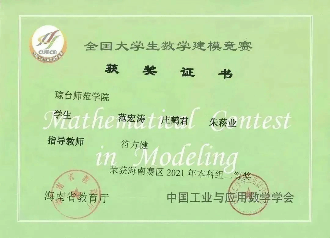 2021年全国大学生数学建模竞赛海南赛区二等奖