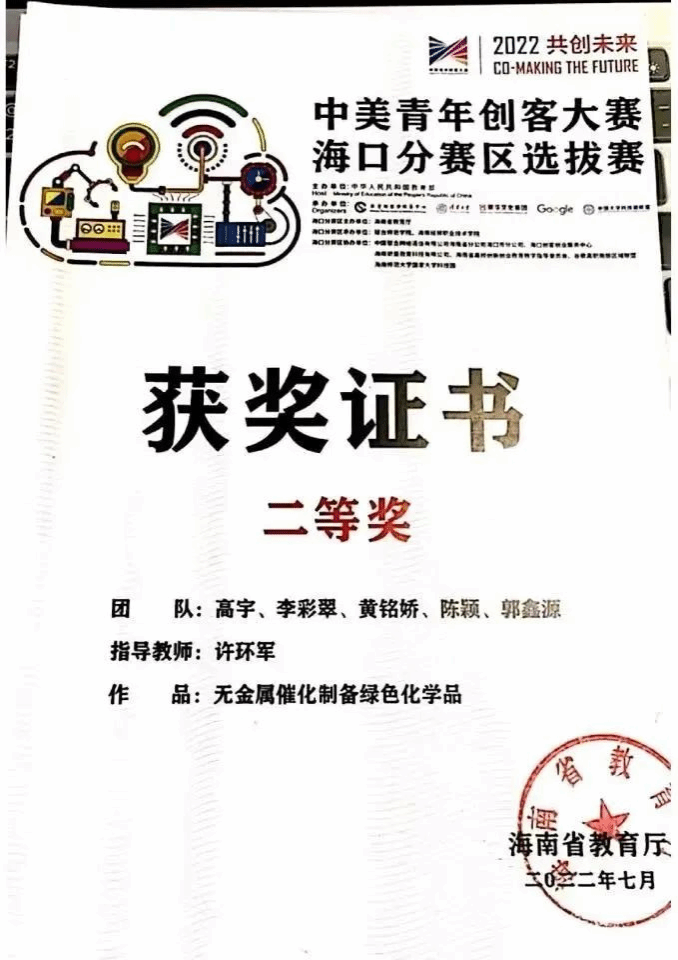 中美青年创客大赛海口分赛区选拔赛二等奖