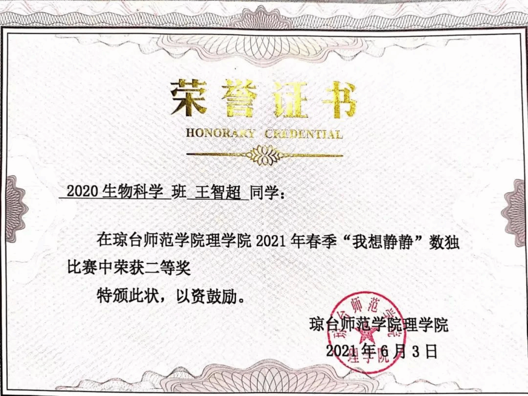 2021年理学院第三届“我想静静”数独比赛二等奖