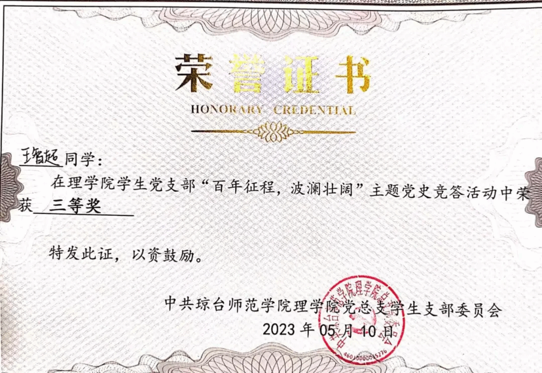 2023年理学院“百年征程,波澜壮阔”党史竞答三等奖