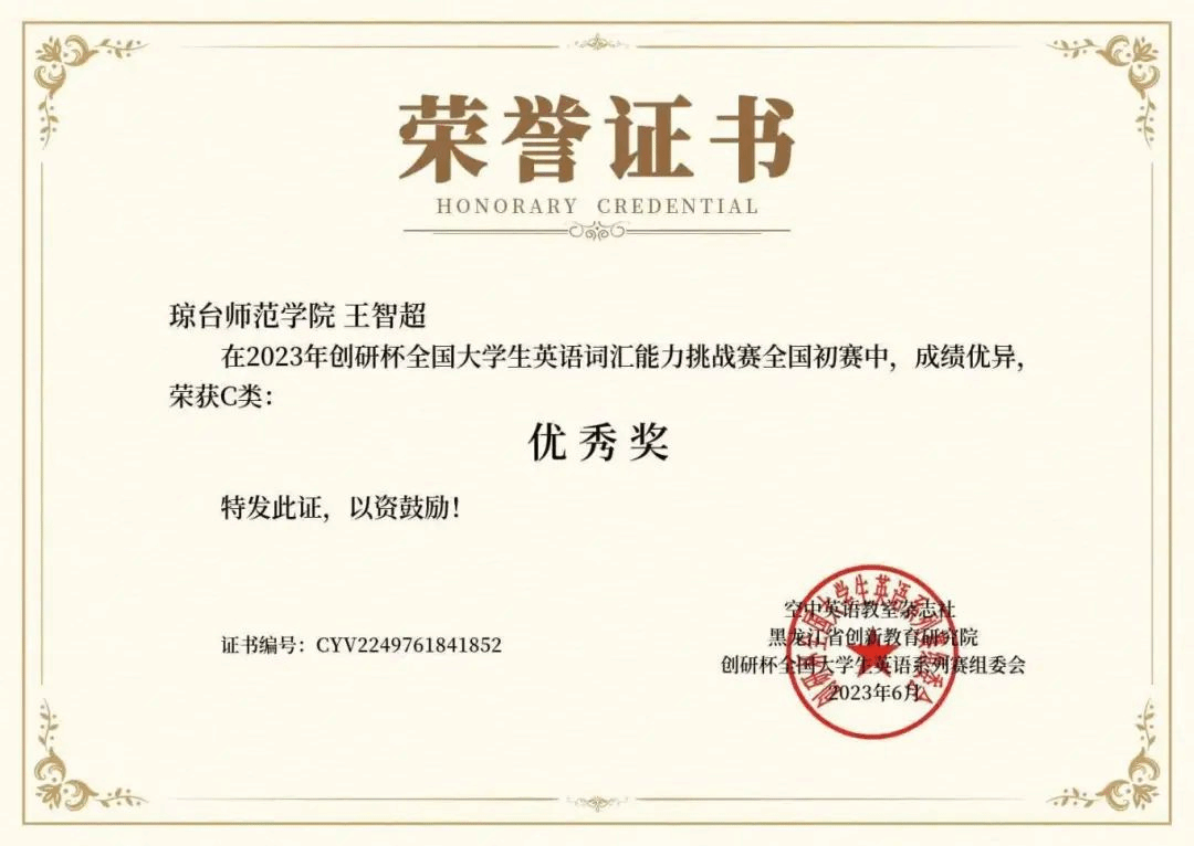 2023年创研杯全国大学生英语词汇能力挑战赛优秀奖