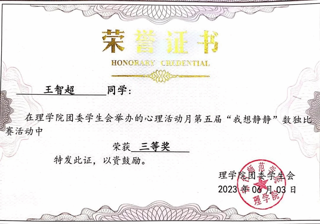 2023年理学院第五届“我想静静”数独比赛三等奖