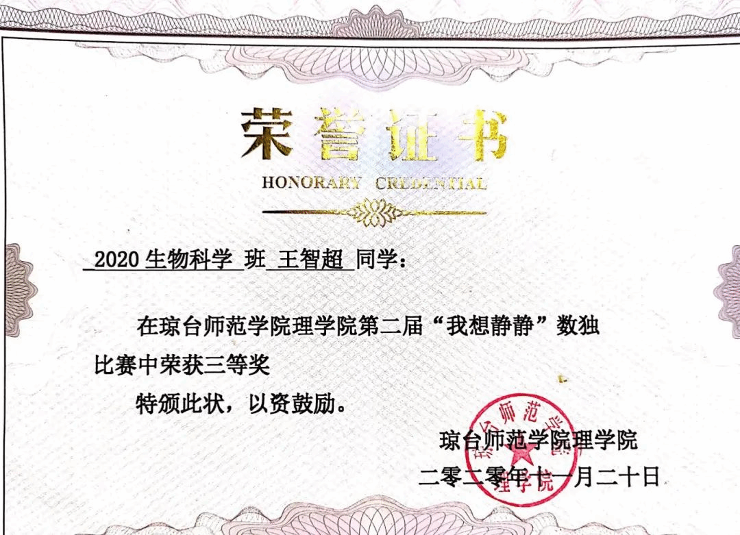 2020年理学院第二届“我想静静”数独比赛三等奖