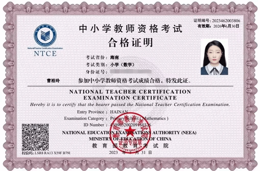 2023年获得小学数学教师资格证书