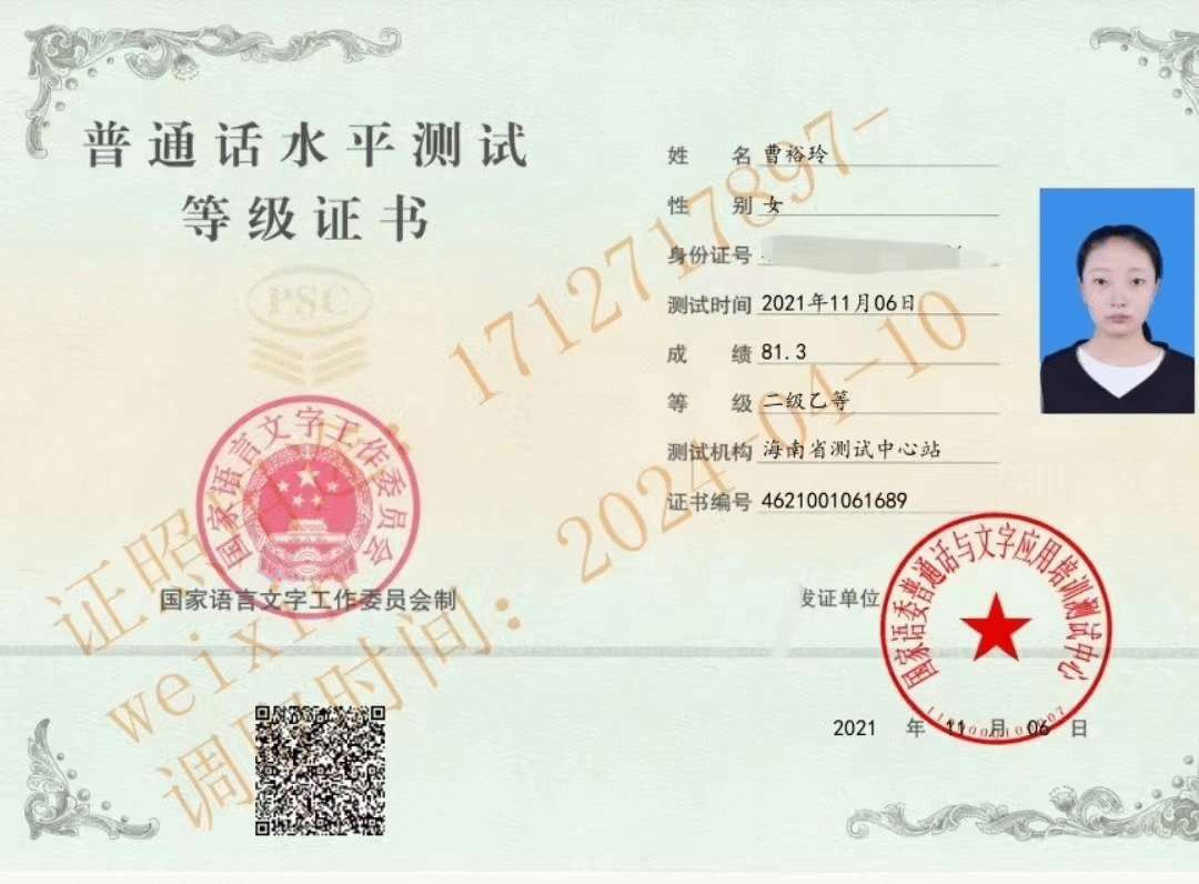 2021年获普通话水平测试二级乙等