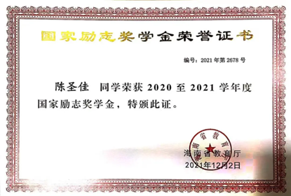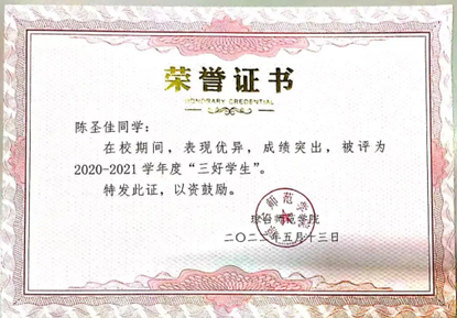 在学习方面,陈圣佳同学始终把学习放在首位,养成很好的学习习惯,自觉性强,积极投入到各门基础课和专业课的学习中,给自己明确学习目标并端正学习态度,遇到不懂的知识点会找老师请教,平时也会和同学们交流与讨论专业知识问题。她曾在2021学年、2023学年获得国家励志奖学金、2021学年获得校三等奖学金、2023学年获得校一等奖学金,连续三年获得三好学生。她积极参加各种竞赛,如:数学竞赛、互联网+、挑战杯等竞赛。她要求自己统筹好学习与工作的关系,时刻提醒自己在开展班级、组织工作的同时要提高学习效率,绝不能因为班级、组织工作而落下学习任务。正因如此,她学业成绩居于专业前列。