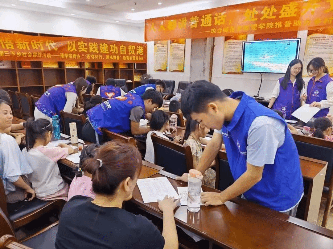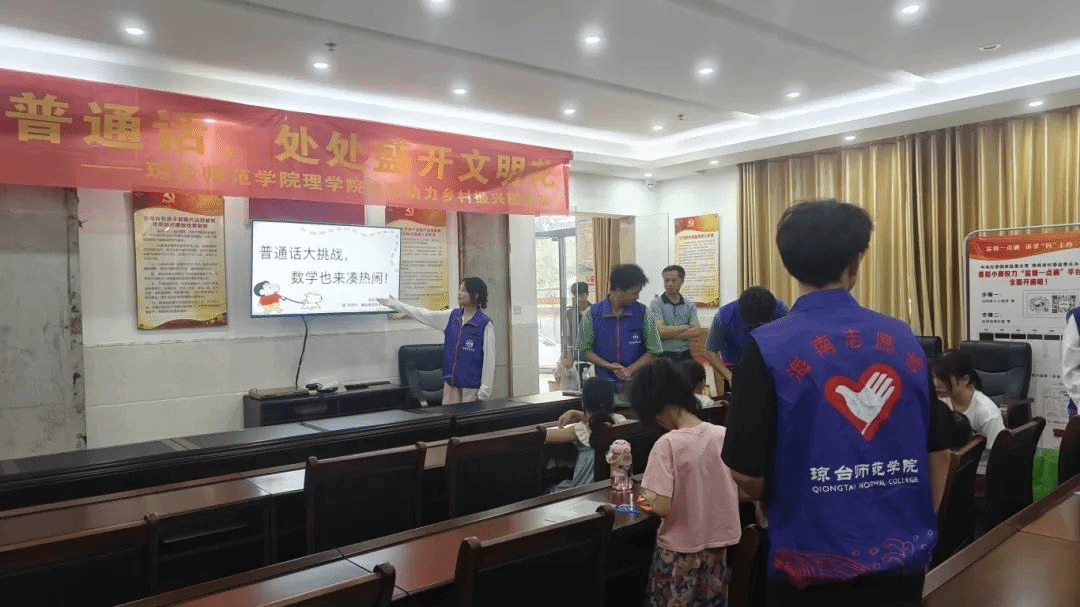 在这个充满生机与活力的七月,阳光明媚而不炙热,微风和煦而不凛冽,演丰社区居委会会议室内如期举行了一场别开生面的推普活动——琼台师范学院理学院“语”你同行,趣味推普教育关爱活动。