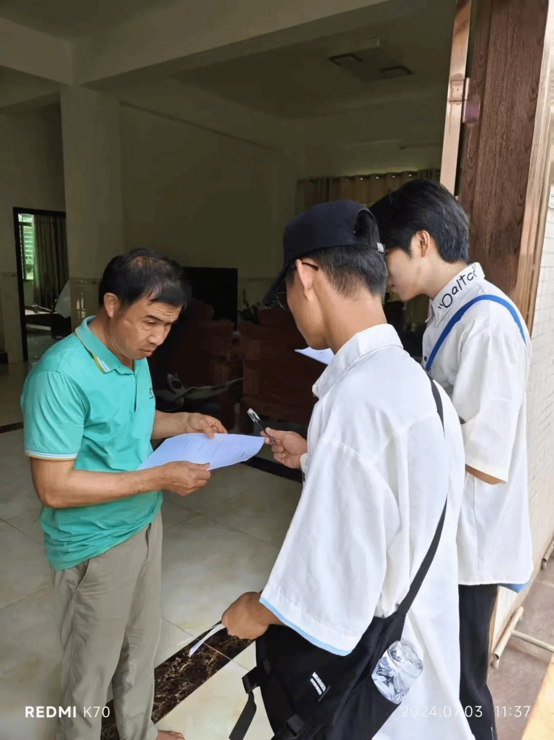 为了解海南省海口市美兰区龙窝村当地人民对乡村振兴这一战略的了解程度,我团队决定采访当地村委会里面的村主任等村级干部,深入乡村的各个角落进行实地调研。详细了解村庄的人口结构、产业布局、基础设施状况等,通过与村民面对面交流,倾听他们的心声和诉求,收集资料,为后续工作奠定基础。大概了解村貌及村里落户人家的情况,征求他们的同意,并进行采访。与不同年龄段、不同职业的村民进行深入访谈。2024年7月8号,团队成员依然按照计划按时到达龙窝村,与前一日不同的是,今日主要采访的是居民,在宣传乡村振兴的同时,让他们填写由我们所制作的调研问卷,以便团队数据的采集。
