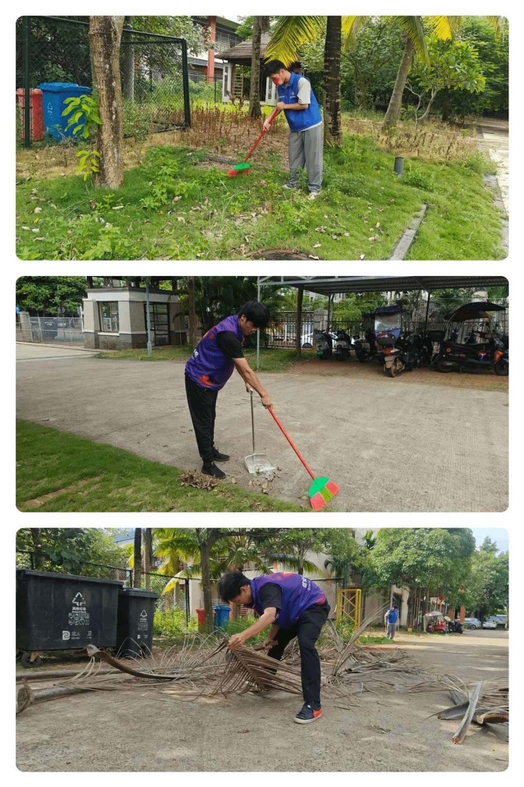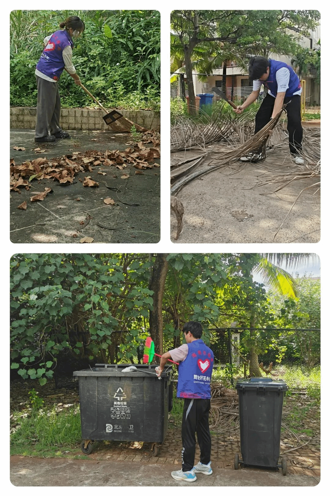 在宣讲之后,志愿者们主动承担起了养老院的清洁工作。专注于户外的绿化维护,包括打扫树叶、修剪树枝和草坪等。志愿者们的辛勤劳动不仅改善了居住环境,也展现了他们的团队精神及对老人们的敬爱和关怀。