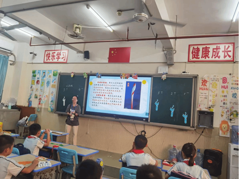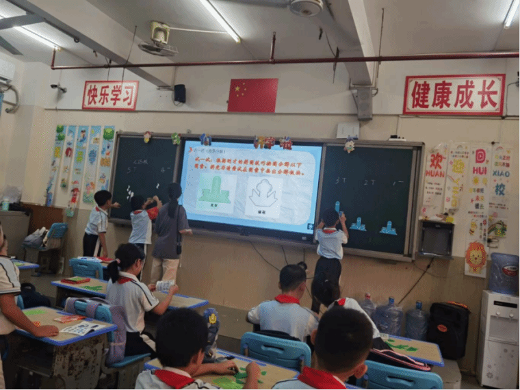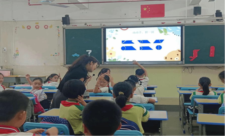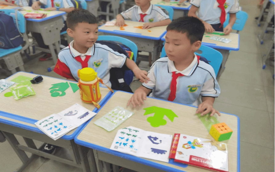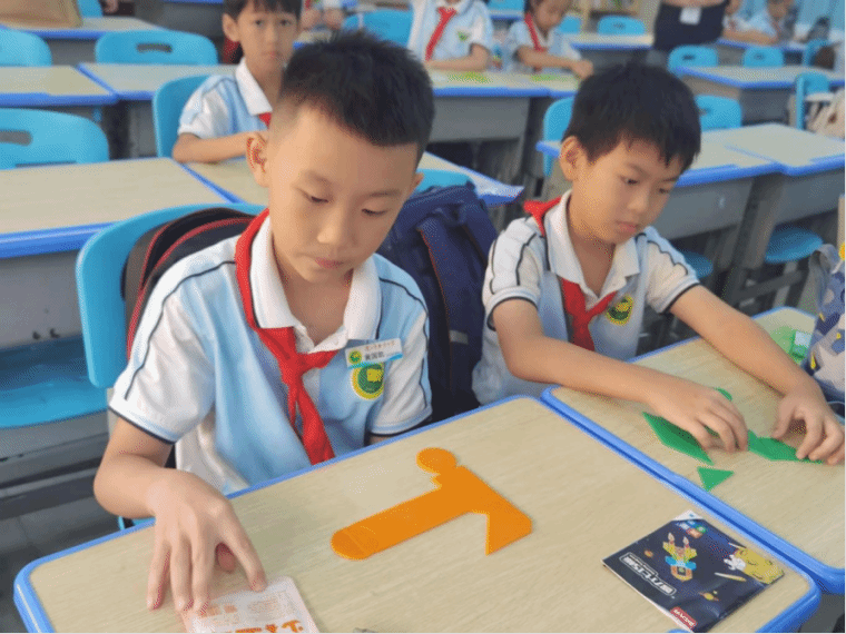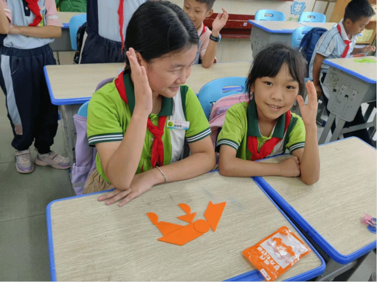三年级的同学们认真听讲,在曹玉华老师的带领下了解了七巧板悠久的历史和深厚的文化底蕴。同学们积极地回答问题并主动展示学习成果,发展动手的活动能力,强化逻辑思维,课堂氛围较好。