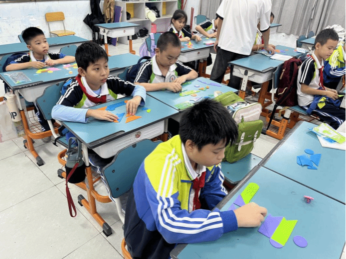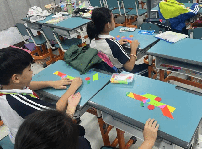 在充满活力与创意的时代,实习生们总在寻找能够激发学生潜能、培养他们创新能力。在五彩斑斓的益智世界里,七巧板就像一把充满魔力的钥匙,打开学生们探索空间、想象和逻辑思维的智慧之门。2024年11月7日,理学院阳光教育七巧板在海口市第二十五小学开展第七周七巧板教学活动。