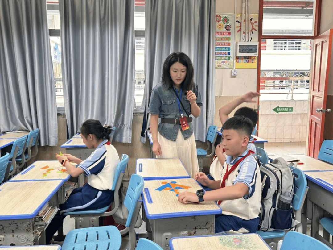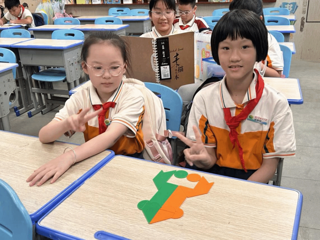 什么是多副组合?用2-3副七巧板拼出更复杂的图案!比如「未来战机」「鹊桥相会」,不仅要拼出形状,还要讲究板块不重叠、不增减,挑战升级,创意无限。本次课程以三、四年级的小朋友为主,开展七巧板课后服务工作。
