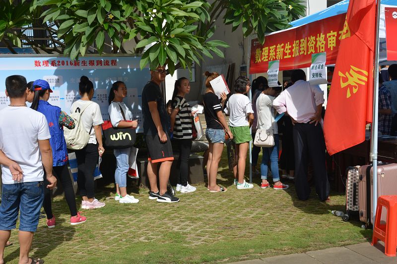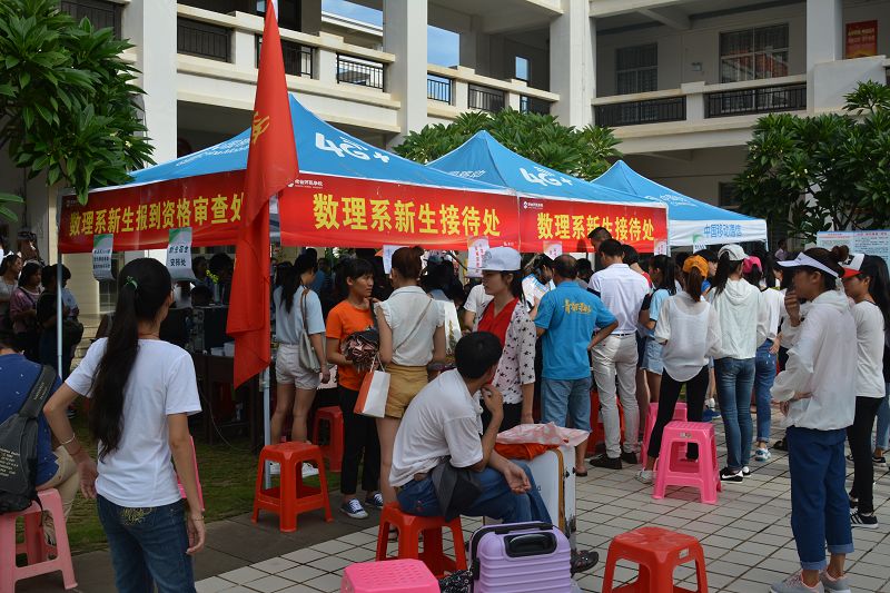 9月10日是2016级新生报到的第一天,炎热的天气丝毫没有阻挡我们的工作热情,数理系迎新工作正在紧张而又有序的进行。来自祖国四面八方的2016级新生和家长们络绎不绝地来到数理系大本营,迎新工作人员正以饱满的热情接待他们,志愿者们用最美的笑容和最好的态度帮助他们,让初来乍到的新生和家长感受到数理系这个大家庭的第一份温暖。