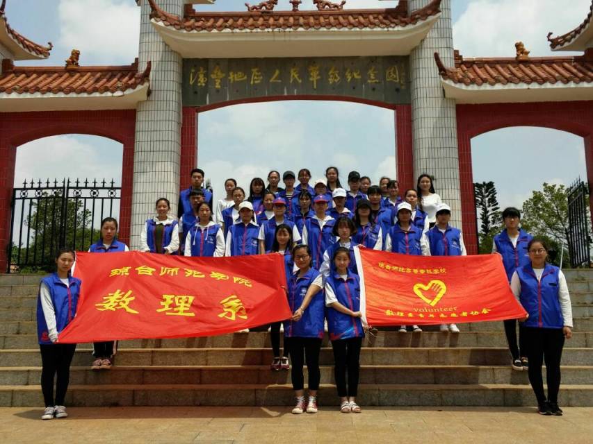 缅怀先烈,寄情清明。清明节是二十四个节气中最具人文历史的节日之一,人们在清明怀念逝者,祭祀祖先,缅怀烈士。为了纪念这个有着深远意义的日子,引导大学生弘扬爱国主义精神,加强爱国主义教育,在数理系团总支的指导下,数理系青协开展了“红四月”清明扫墓活动。希望同学们借扫墓之际回顾历史,重温历史,了解革命烈士的英雄事迹,学习烈士们的精神,以此增进爱国主义情感。4月7日下午,数理系20多名学生干部及学生党员前往演丰地区人民革命纪念园开展扫墓活动。带着对烈士的无限敬仰之情,师生们来到烈士纪念园进行祭扫。在庄严肃穆的氛围中,在青协陈顺顺的同学主持下,志愿者们了解了纪念园的历史,以及徐成章等烈士的英雄事迹。接下来进行了庄严的宣誓仪式,全体志愿者伫立,为革命烈士哀悼一分钟。随后,同学们向革命烈士敬献花篮并参观了烈士纪念园。吴钟熙老师在最后总结到:“红军长征几万里,我们徒步六公里,远不及革命先烈们所经历遇到的困难,希望同学们能够学习先烈们不怕困难、迎难而上的精神”本次活动目的在于激发学生继承发扬革命先烈优良传统,引导学生增强爱国主义精神。通过这次活动,同学们了解了幸福生活得来不易,纷纷表示将努力学习,争取成才,为实现“中国梦”贡献自己的力量。