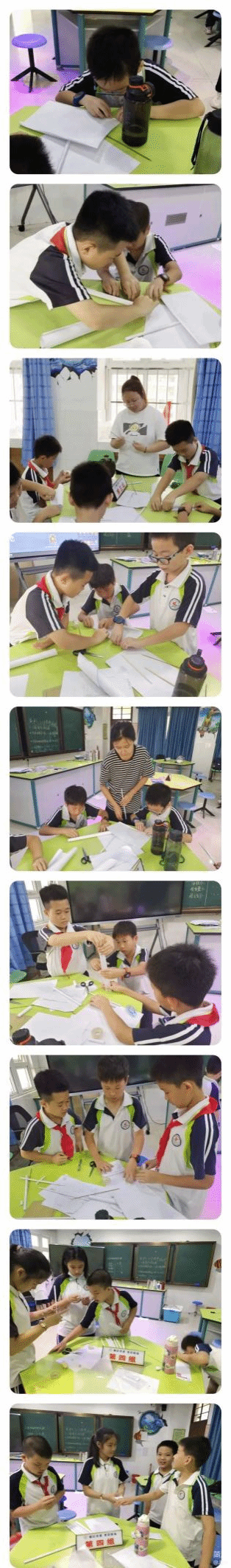 同学们合作无间,卷纸、粘贴、拼接,小组工作分配有序,比赛未完待续……
