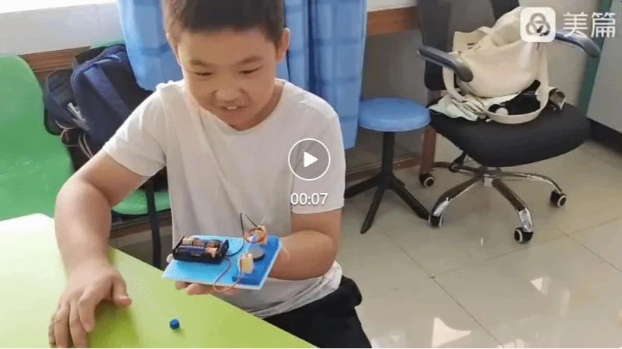 电磁铁实验利用的是电流磁效应的原理来实现的。任何通有电流的导线,都可以在其周围产生磁场的现象,称为电流的磁效应。电池给装置提供了电流,电流通过导线,使得导线对应的金属也具备了磁性,从而把贴片吸起来了。