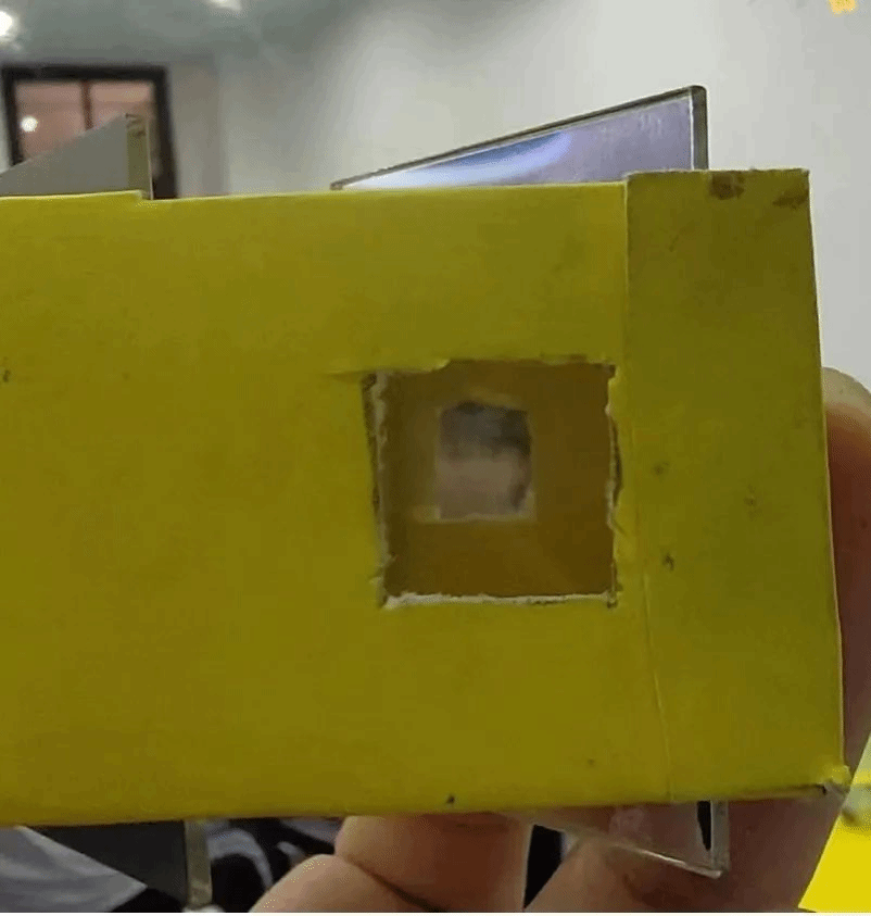 为了学生们的安全,在制作潜望镜的过程中,实习老师们帮助学生剪纸盒子安装镜片的缝隙和观看的小孔。