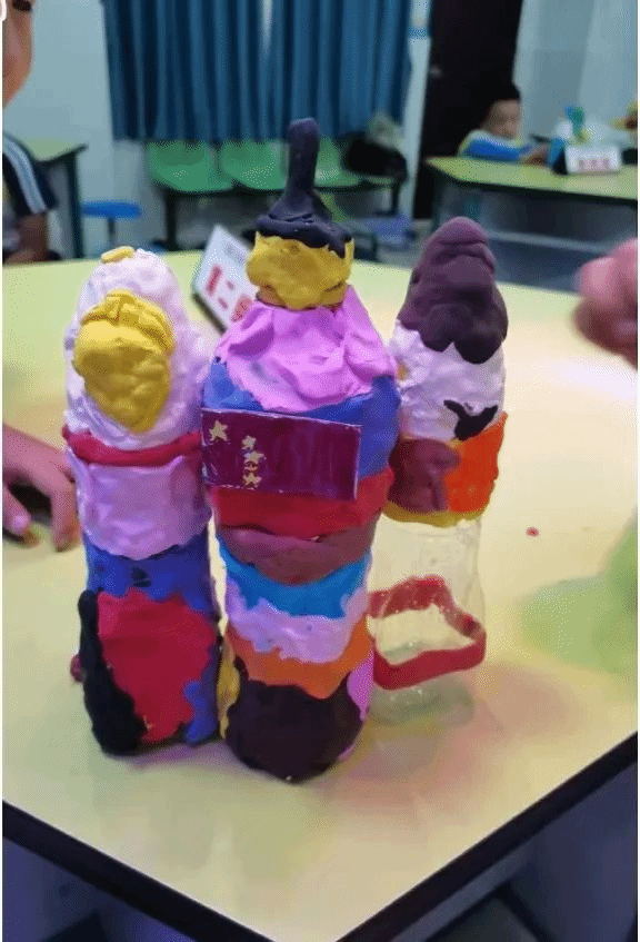 让我们一起欣赏同学们堆叠出的彩色杯吧!