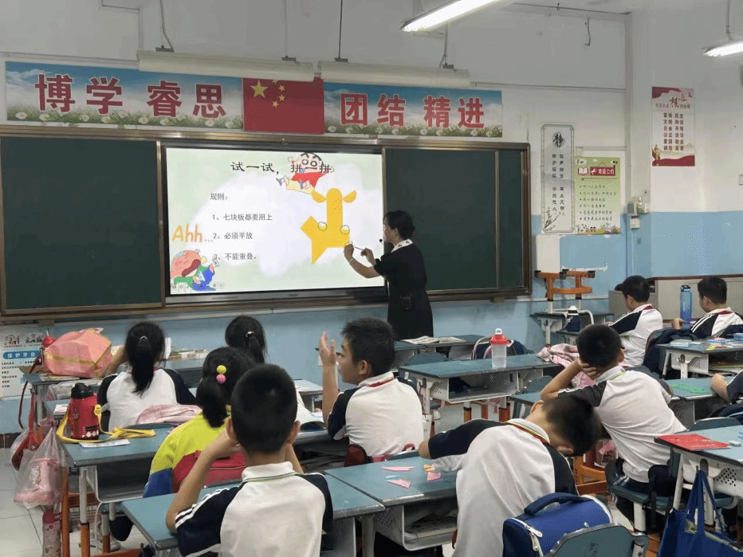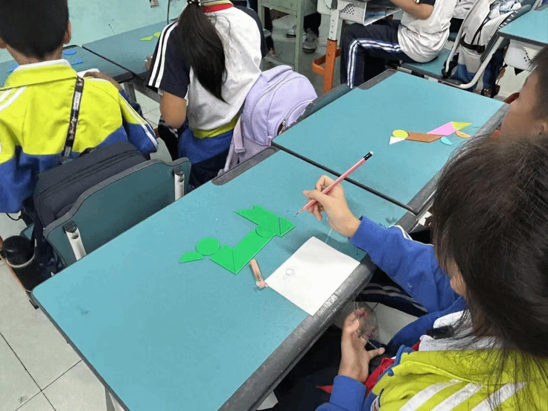 最后,课堂接近尾声。告诉大家这个活动不仅能培养你们的创造力,还能提升你们的空间认知能力。希望大家在接下来的课堂中能继续保持热情,探索更多有趣的七巧板拼图。
