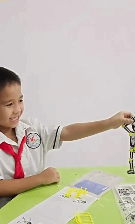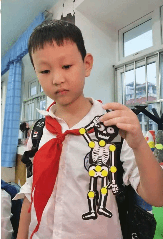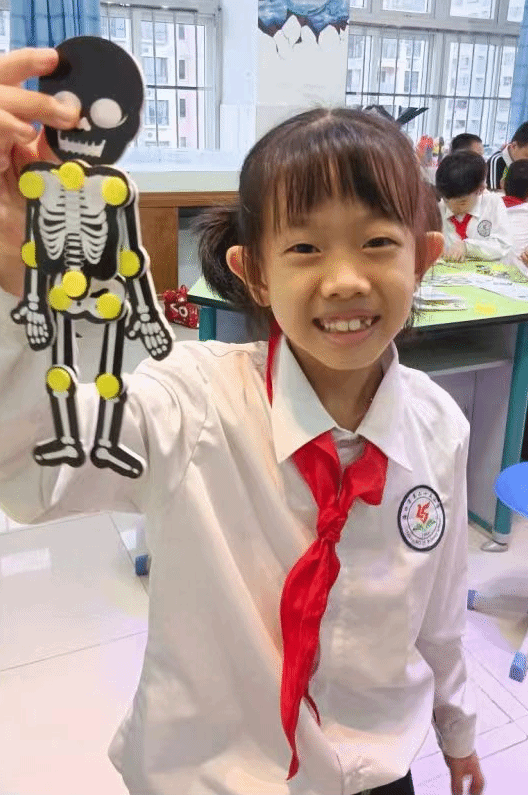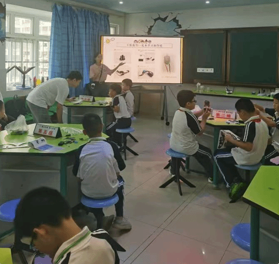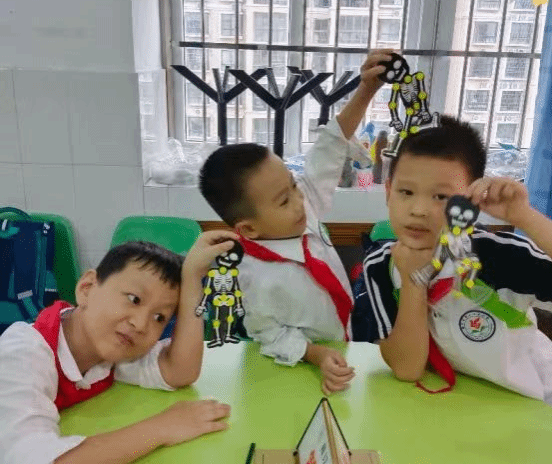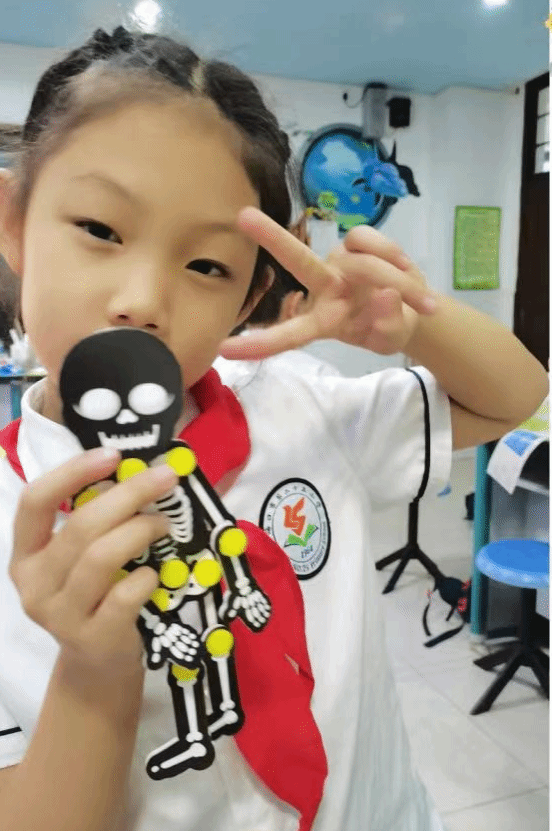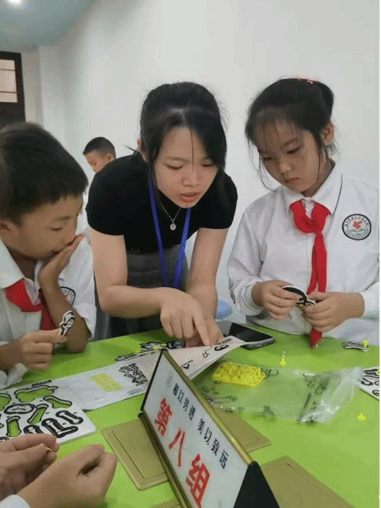骨骼拼接难度不大,大部分学生们都独立完成,动手能力强。老师们巡堂观察,帮助学生取扣妞。