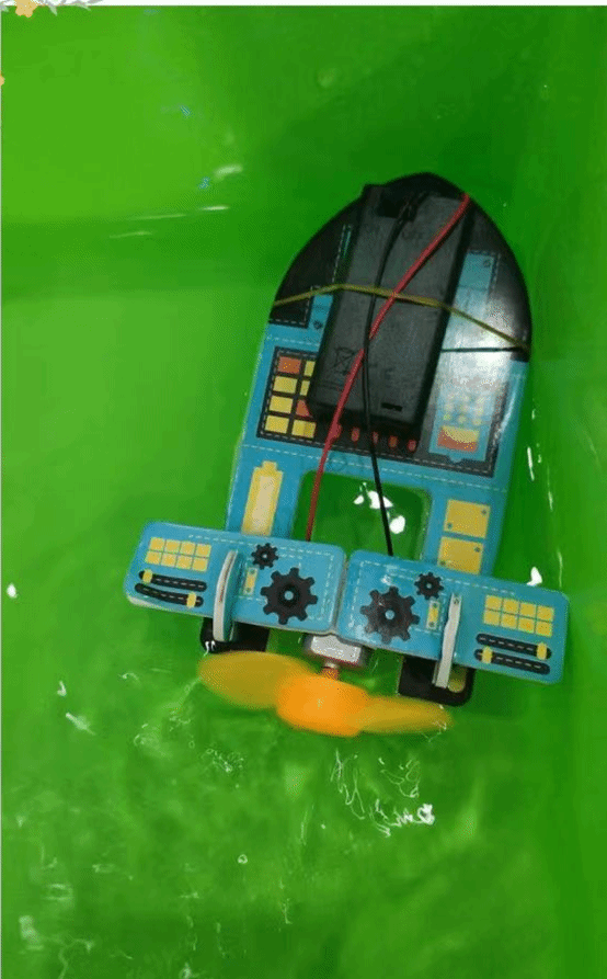 为了使学生进一步了解以橡皮筋为动力的船,学生们额外准备了材料,根据莫老师讲解的原理,设计和制作了另一种橡皮筋船。