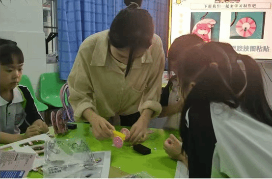 考虑到一年级的学生对电路比较陌生,所以实习生傅老师提前录制了小马达和导线连接的视频。