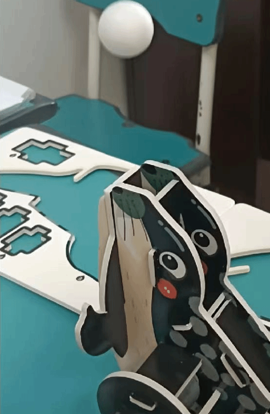在海狮内部安装有一个小风扇,为了使空气流速更快,需要将小风扇周边的拼块尽可能的紧密拼接,这样才可以使泡沫小球悬浮。