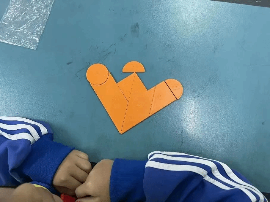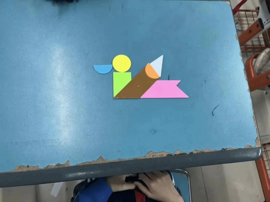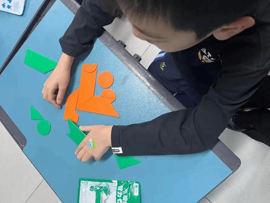 二年级的课堂中,成钰杰老师设定特殊情景,带领同学们走进七巧板的世界,让同学们对智力七巧板有了初步的认识,了解拼图原则,为以后的拼图奠定基础。