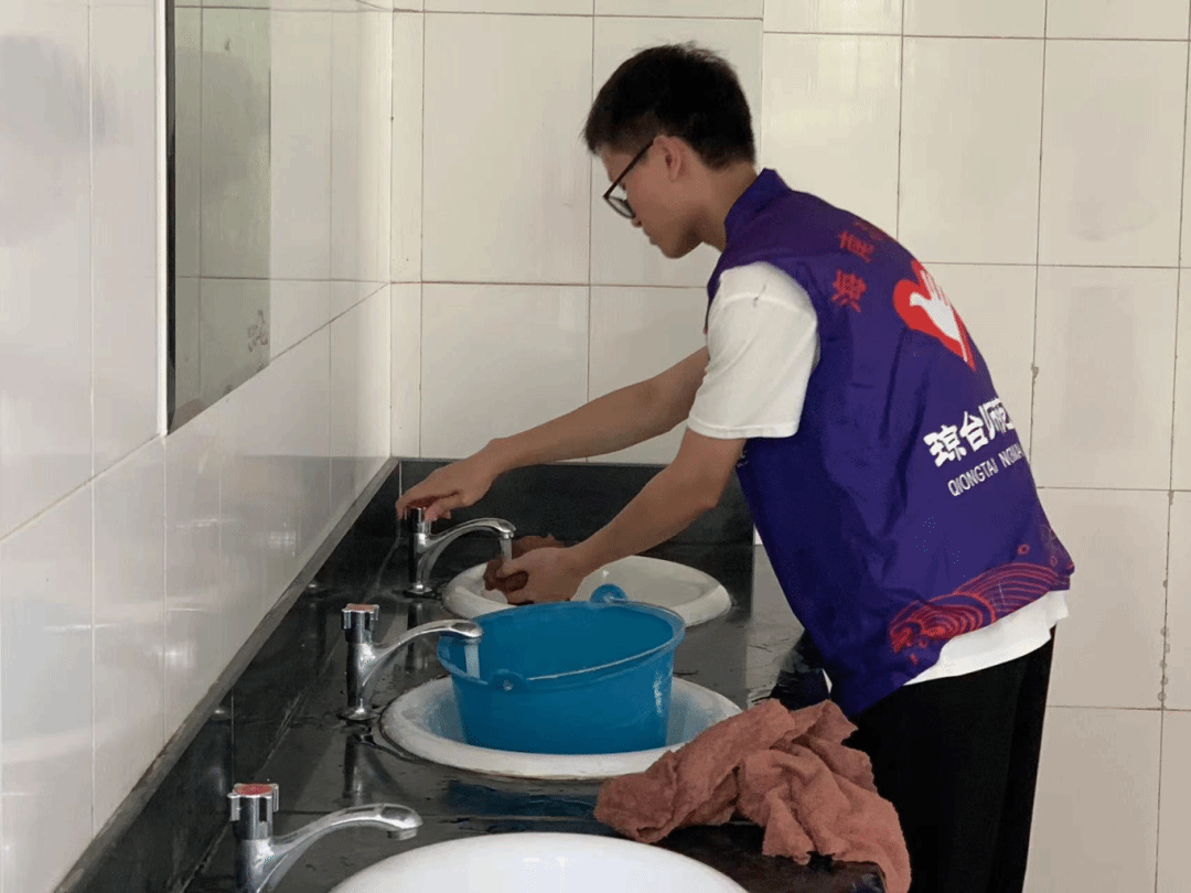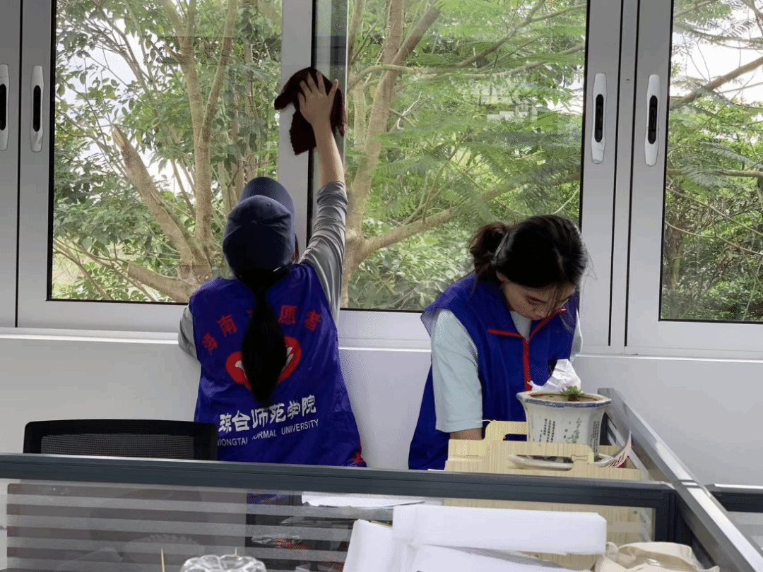 为了构建和谐的师生关系,提升校园文明水平,理学院团委青年志愿者协会于5月14日在琼台师范学院(桂林洋校区)实验楼AB栋展开了“打扫办公室”志愿活动。