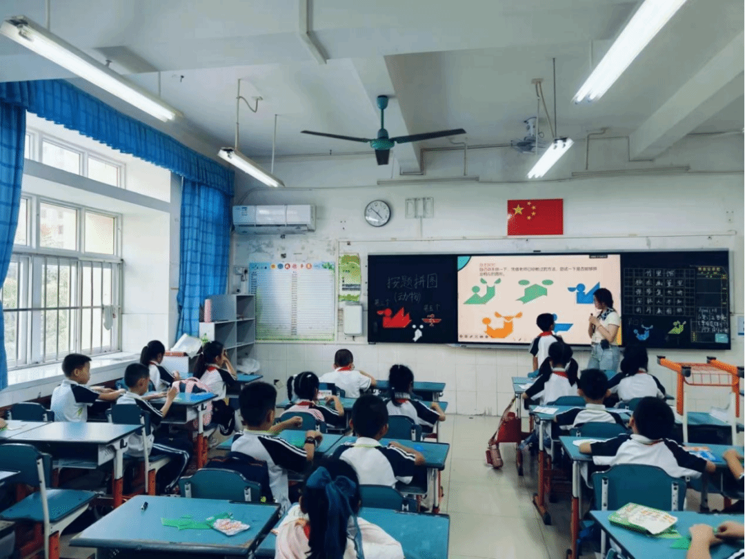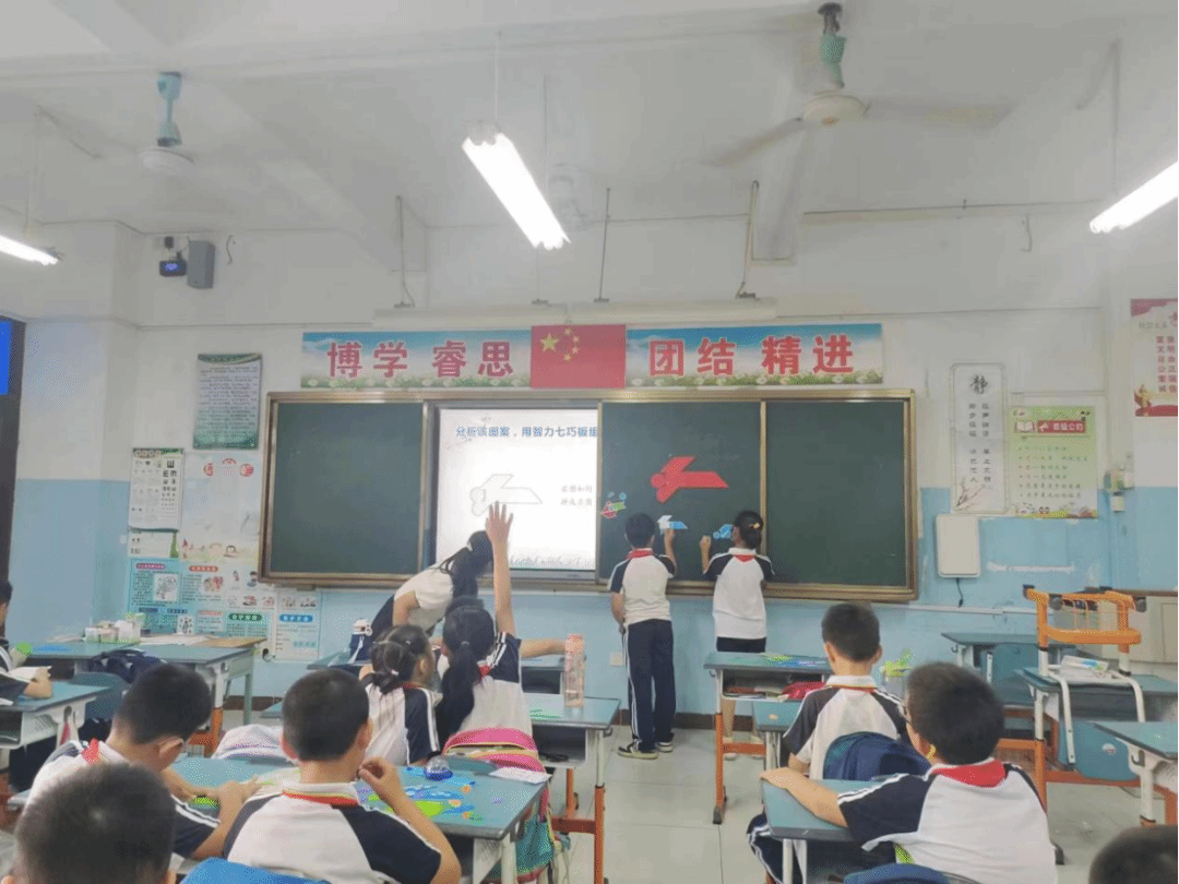 三年级的学生们上课非常积极的回答老师问题,在童玲玲老师的带领下更深入地学习了七巧板的知识,更加感受到了七巧板的乐趣。