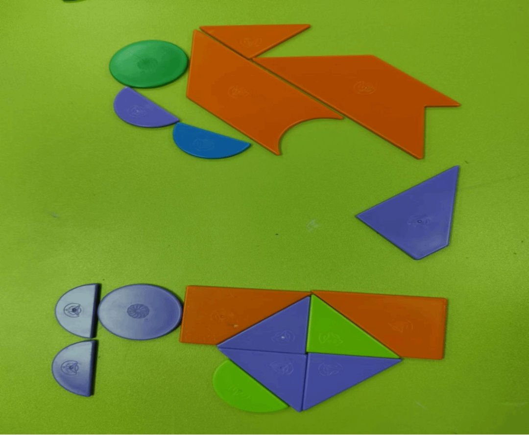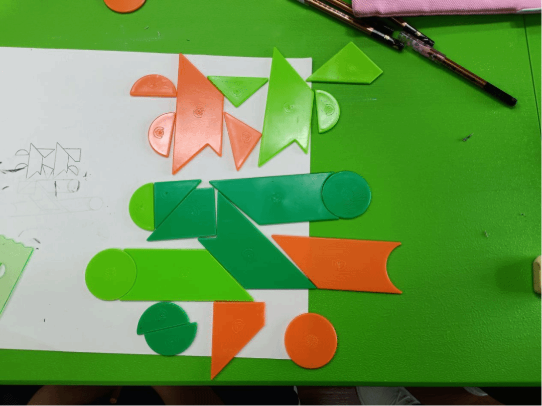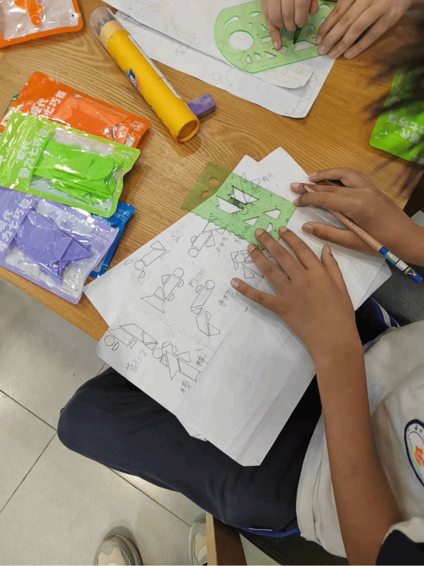 相较于课后兴趣组,竞赛课程内容的深度与丰富度得到了显著提升。不再局限于单一的图形,而是转向了更为复杂、具有独特故事线的图案。经过一段时间的学习,学生们已经能够巧妙地运用七巧板,拼出一个个生动有趣的故事。