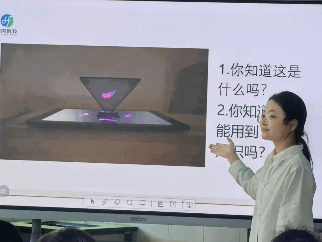 于雅琪老师以其渊博的知识和深入浅出的讲解方式,像一位智慧的引路人,开启了这趟充满科技魅力的旅程。她用生动形象的语言,将复杂的全息投影原理娓娓道来,仿佛为同学们打开了一扇通往未来科技的大门。同学们的目光紧紧跟随着于老师,眼中充满了对知识的渴望和好奇。