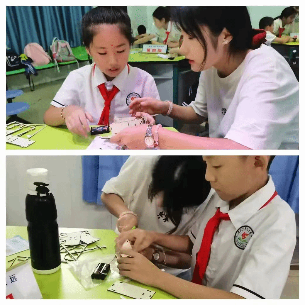 而于雅琪老师,则犹如一位默默守护的天使,在一旁悉心辅导。她温柔的目光,如同春日的暖阳,给予孩子们无尽的温暖与鼓励。于雅琪老师耐心地解答着孩子们的每一个问题,用细腻的指导帮助孩子们克服困难。她的双手如同魔法棒,轻轻一点,便让孩子们豁然开朗。两位老师的默契配合,如同齿轮的完美联动,为孩子们的科学之旅注入了强大的动力。