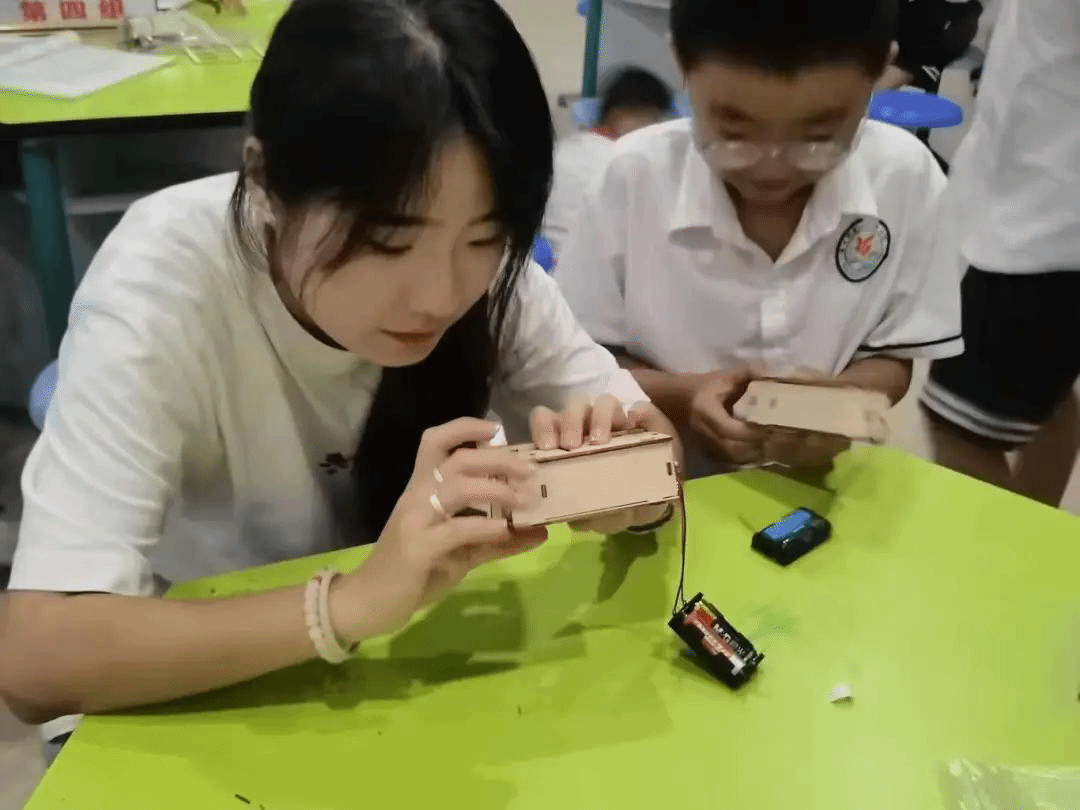 孩子们围坐在一起,手中的工具仿佛变成了魔法棒,将一块块普通的木板变成了神奇的幻灯机。他们专注的眼神中闪烁着对科学的热爱与好奇,那一双双小手小心翼翼地拼接、组装,仿佛在创造着属于自己的未来。在这个过程中,他们不仅学到了科学知识,更培养了动手能力和团队合作精神。