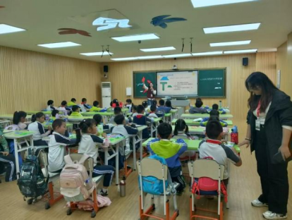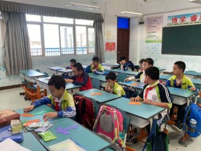 上课铃声刚刚敲响,三、四年级的小朋友们已经把七巧板摆得整整齐齐在课桌上了,坐姿端正的,安安静静的,眼睛里充满着好奇与热情,期待着一会儿老师的上课内容。