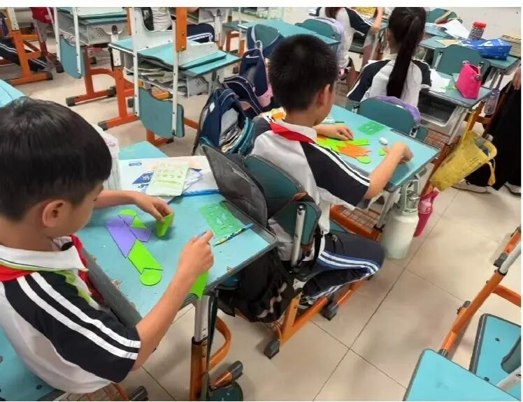 同学们求知若渴,全程专注聆听,积极举手回答问题,主动与老师互动交流,课堂氛围轻松活跃。到了实战演练阶段,教室变身创意基地;七巧板在孩子们指尖灵活翻转,他们全神贯注地摆弄着七巧板,认真创作,五彩斑斓的图案不断涌现。七巧板在他们的巧手下不断变换,仿佛被赋予了生命,每个作品都饱含着天马行空的想象力。
