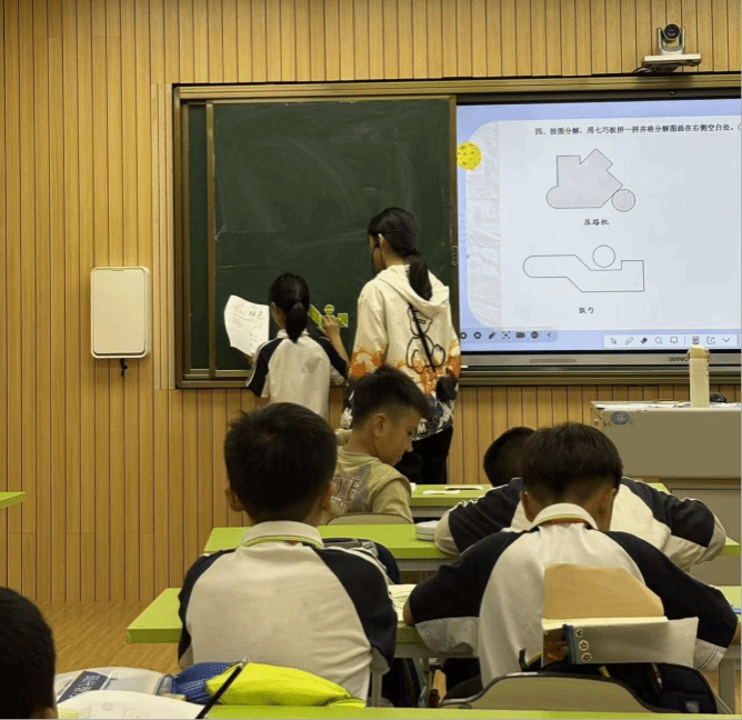 海府校区的七巧板课堂:聚焦实践操作与思维拓展。