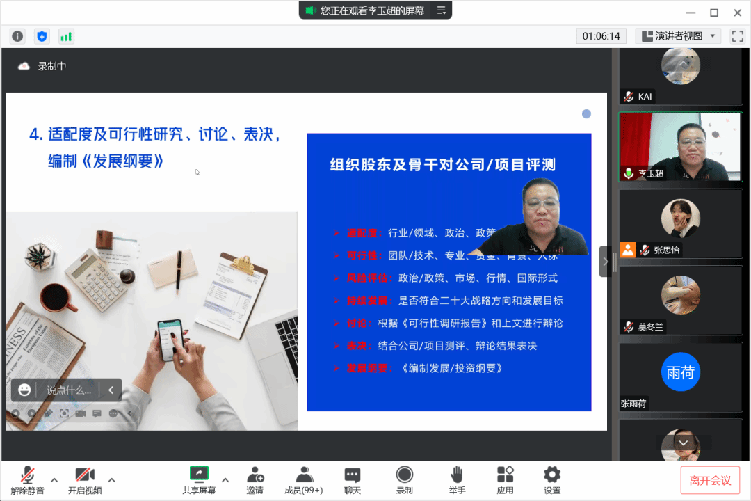 讲座中,李玉超院长结合党的二十大精神和我国的“碳达峰、碳中和”目标,介绍了《创业方案》规划设计的方法是需要结合政治、政策、市场和市场占有率进行充分评估的。