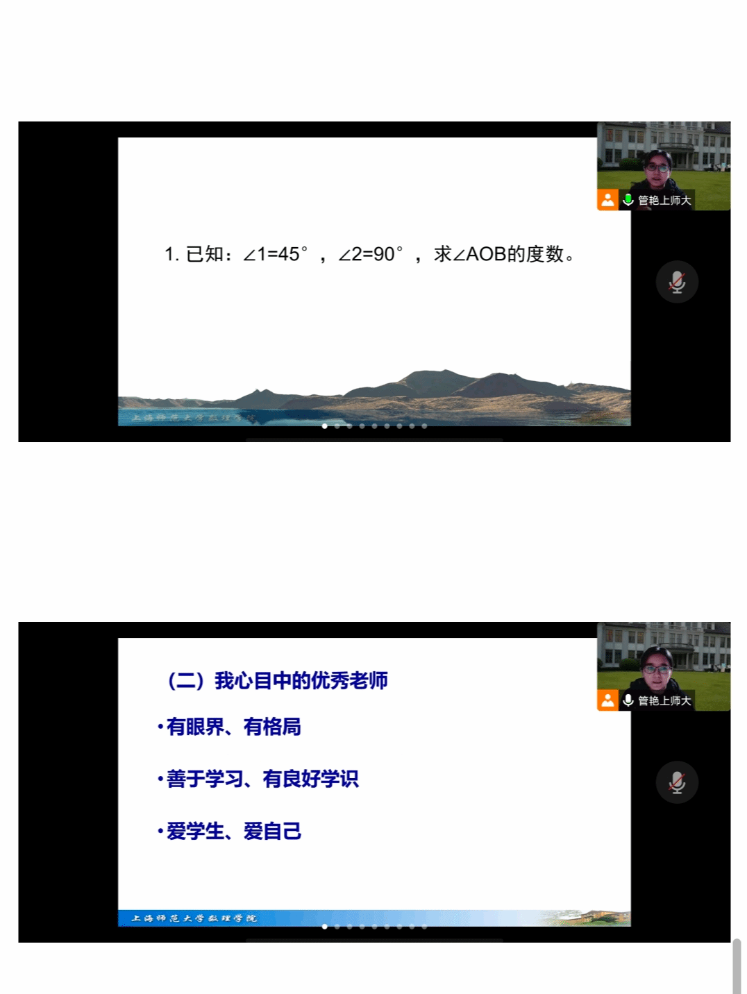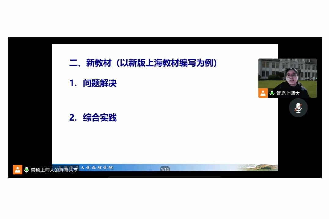 在讲座中,管艳教授以新版上海教材的编写为例,从解决问题和综合实践两方面让大家去体现“新”,并结合实例去体会“新”。