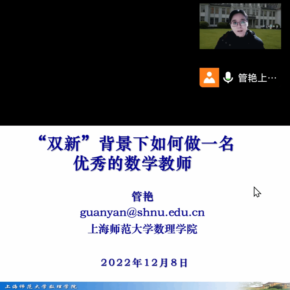 2022年12月8日下午,我院有幸邀请到上海师范大学数理学院管艳教授,为我院数学与应用数学专业的同学们带来以《“双新”背景下如何做一名优秀的数学老师》为主题的线上讲座。本次讲座由库俊华院长主持。