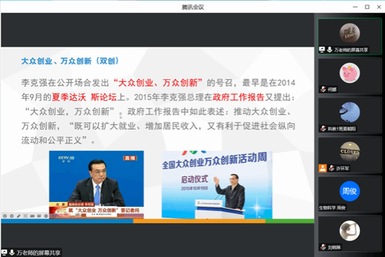 为进一步广泛营造创新创业氛围,提升“互联网+”大学生创新创业大赛项目质量,积极响应大赛号召,鼓励更多的同学参与到其中,了解赛事规则,梳理大赛思路,做好备赛准备。我院特邀请海南热带海洋学院万武波博士,于10月18日下午15:00在线上云端开展主题为大众创业万众创新的大学生创新创业讲座,理学院学子积极参会。