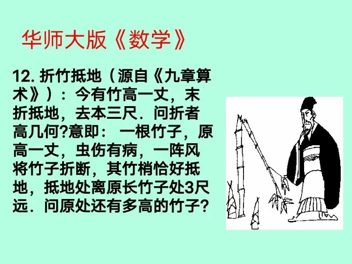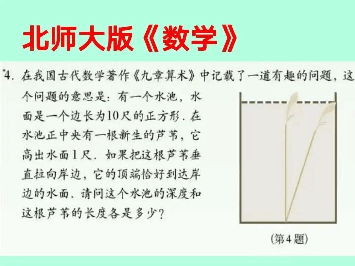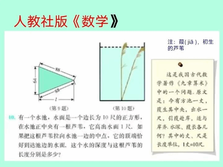 杨孝斌教授对华师大版《数学》、人教社版《数学》、北师大版《数学》中对教材中的勾股定理的古运算进行展示。