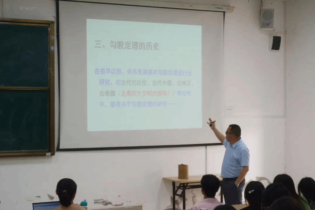 杨孝斌教授的《HPM视角下的数学教学——从勾股定理的历史、证明、推广谈教学》讲座在同学们热烈的掌声中圆满结束,同学们在这场讲座中收获颇多,不仅打破了同学们以往思考问题的方式,而且让同学们意识到发散思维的优点。相信本次讲座对同学们的数学与应用数学的专业成长有很大的帮助。