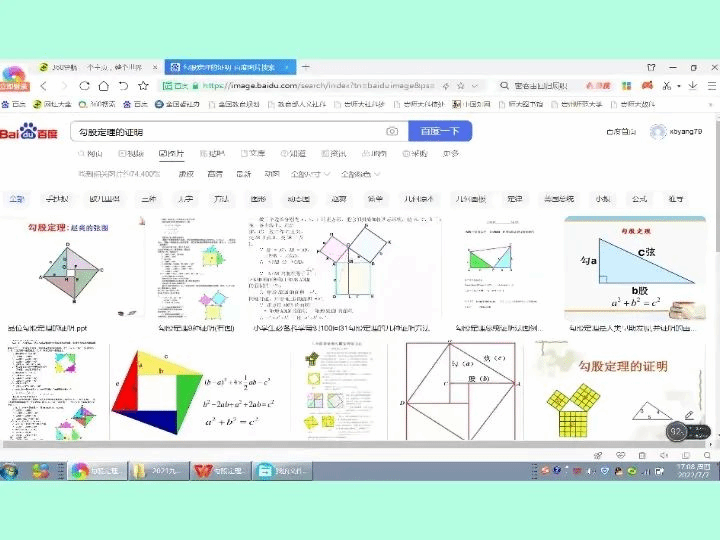 杨孝斌教授提到在很早以前,许多民族都对勾股定理进行过研究。在古代巴比伦、古代中国、古埃及、古希腊等文明中,都有关于勾股定理的研究。对于古巴比伦文明,最近两个世纪以来发现了无数那个古老文明留下的文物----泥板。在众多的泥板中有一块编号为普林顿322号收藏品有对勾股定理的运用。在西方,勾股定理被称之为“毕达哥拉斯定理”。相传2500年前,有一次毕达哥拉斯在朋友家做客时,发现朋友家用砖铺成的地面中反映了直角三角形三边的某种特性。同样地,在我国古代很早就有了对勾股定理的研究。在我国的《周髀算经》一书中已经有了关于勾股定理的记载。