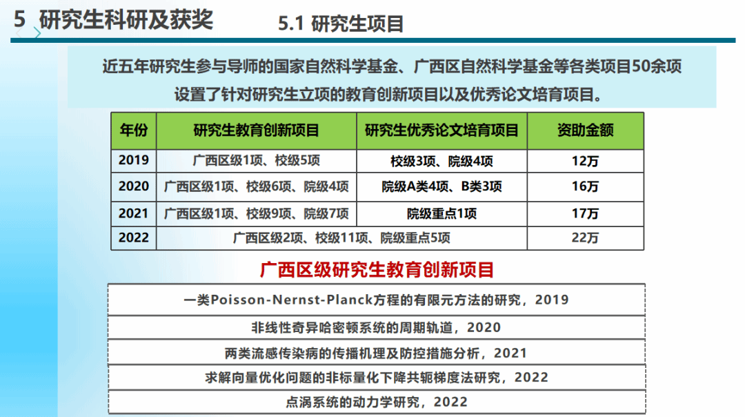 数学学科2010年获得硕士点一级学科,是广西重点学科和广西区博士点建设学科。