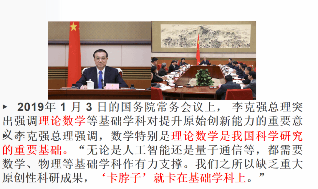 近年来,科技部、 教育部、 中科院多次提到“数学是自然科学的基础, 也是重大技术创新发展的基础,数学实力往往影响着国家实力。”