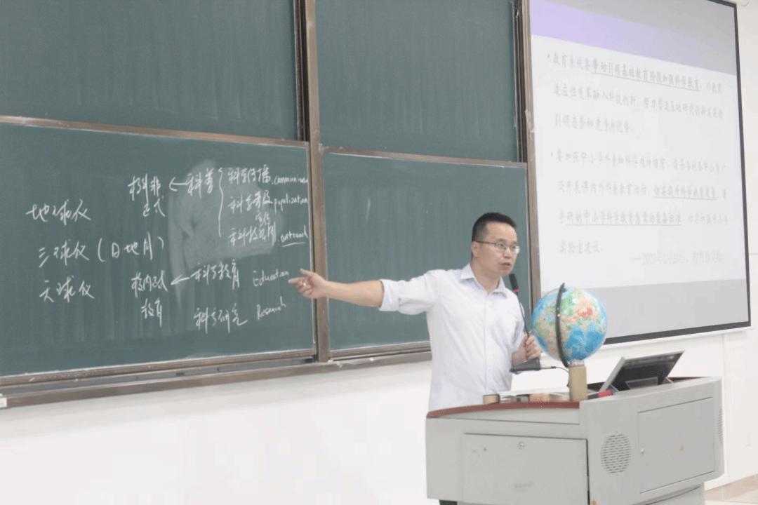 郑永春教授由三球仪、地球仪、天球仪引入主题《如何讲好中小学地球与宇宙科学》并向同学们提出问题“怎么认识星星?”