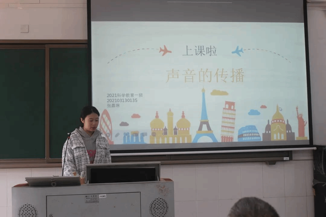 本次比赛共有42名学生参赛,分成数学组和科学组。模拟讲课十分钟,评委根据学生的模拟讲课、课件、教案等进行打分和点评,最后取三个评委的平均分为学生的成绩。