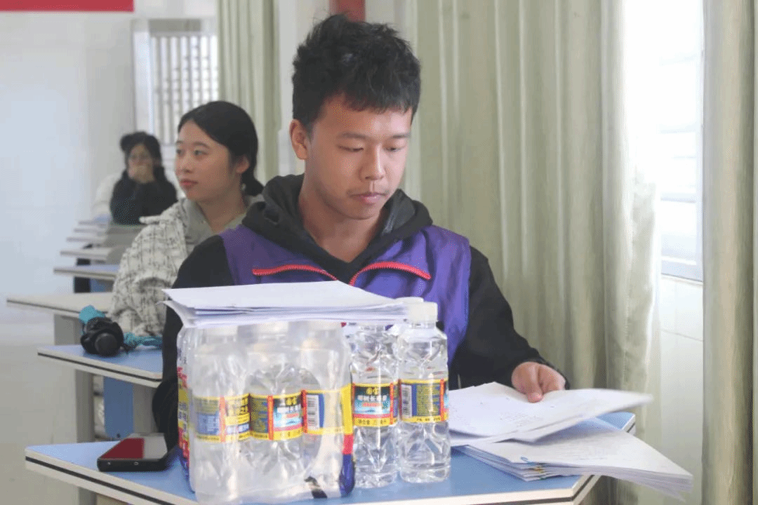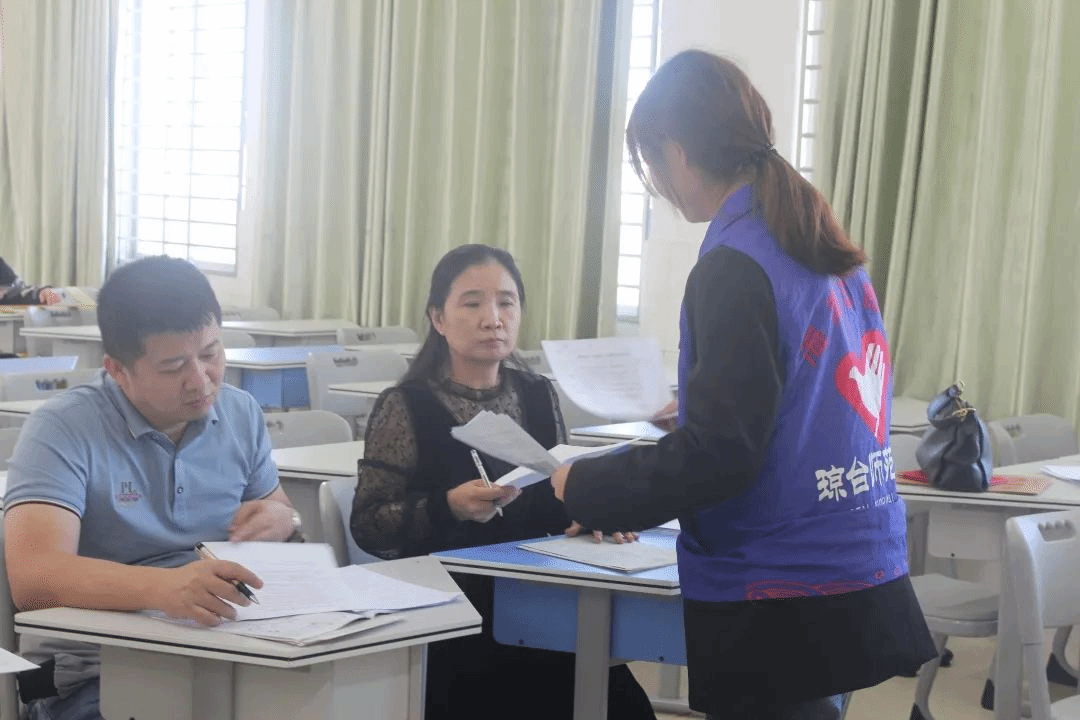 志愿者们为评委老师和参赛人员发放矿泉水,并记录参赛人员的签到情况,协助评委老师打分,维持现场秩序。